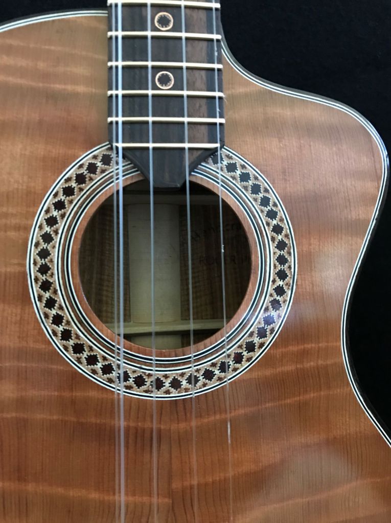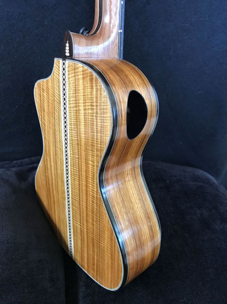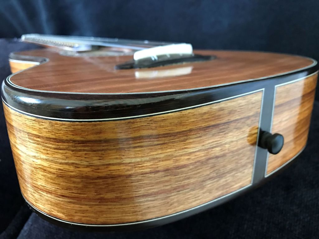 I love the beautiful canarywood, and the sound of the curly redwood top, although it is very soft and easily damaged. The two G strings make for a rich, bright sound, especially when strummed.