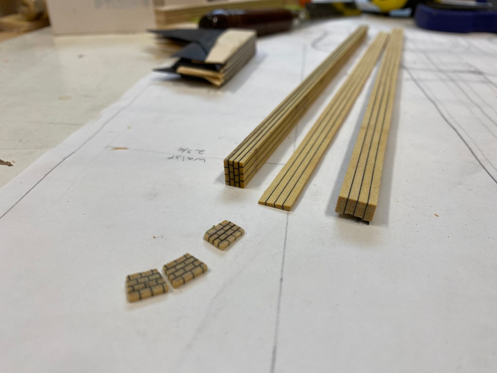 The Yellow Brick Road was a fun challenge, and was built similarly to the classical rosette mosaics using thin strips of Yellowheart and black veneer. The photo below shows several stages in the process. Routing the channel for it, with the rosettes, required a template and very careful setup.